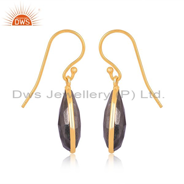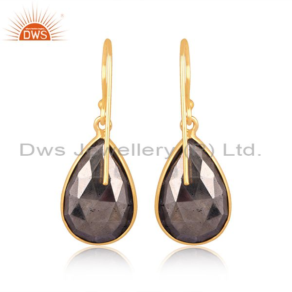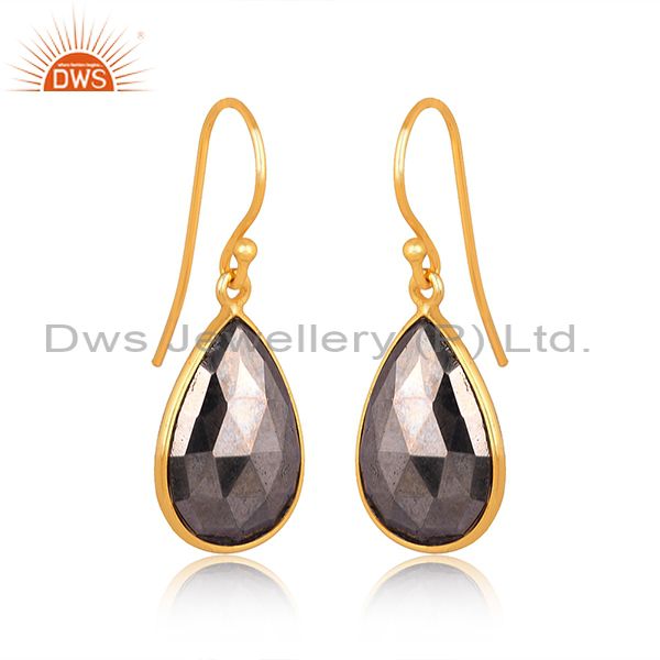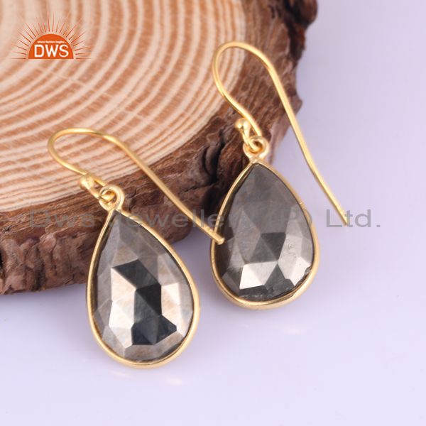 18K Yellow Gold Plated Sterling Silver Faceted Pyrite Bezel Set Teardrop Earring