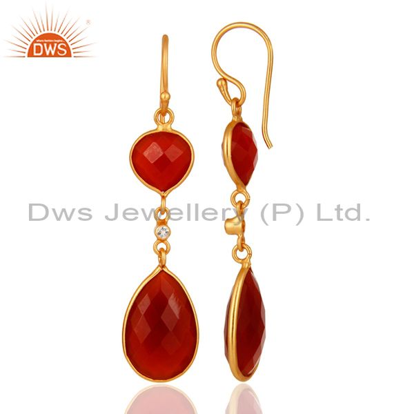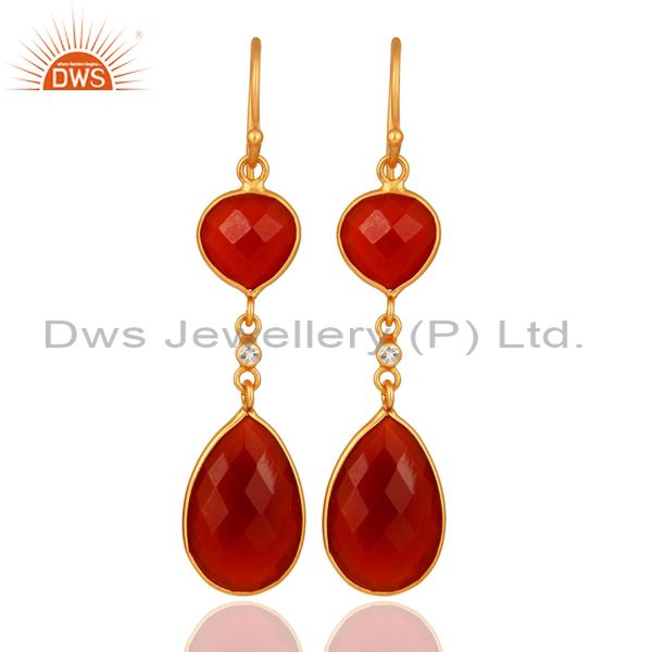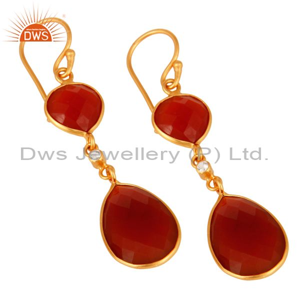 18K Yellow Gold Plated Sterling Silver Faceted Red Onyx Teardrop Bezel Earrings