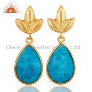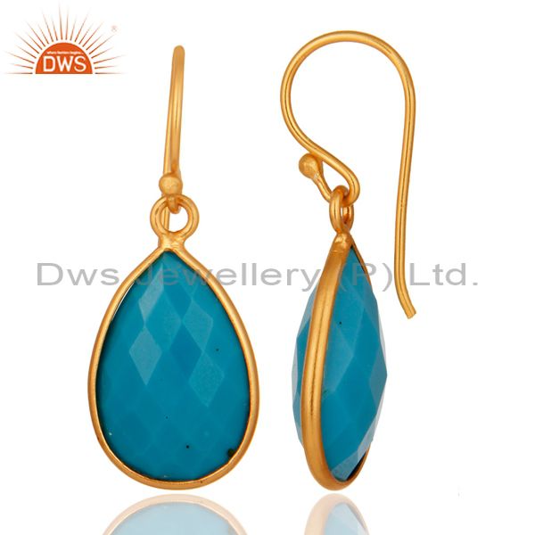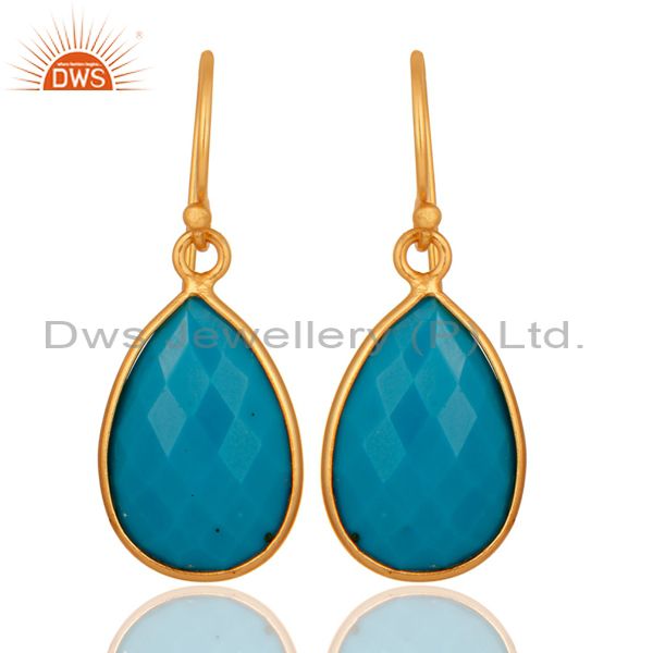 18K Yellow Gold Plated Sterling Silver Faceted Turquoise Bezel Teardrop Earrings