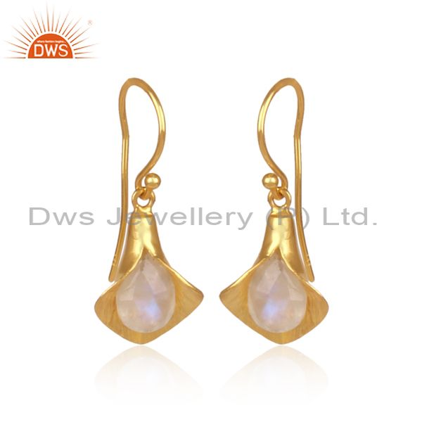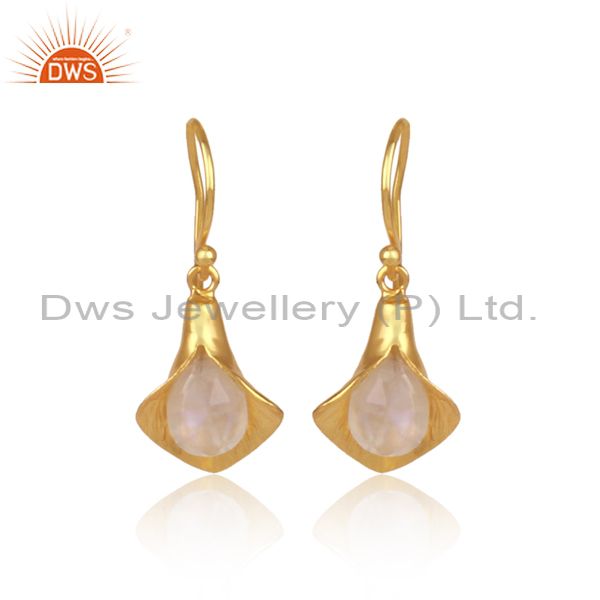 18k Yellow Gold Plated Sterling Silver Fashion Charming Gift Moonstone Earring