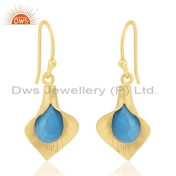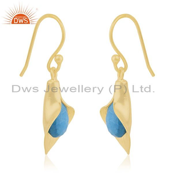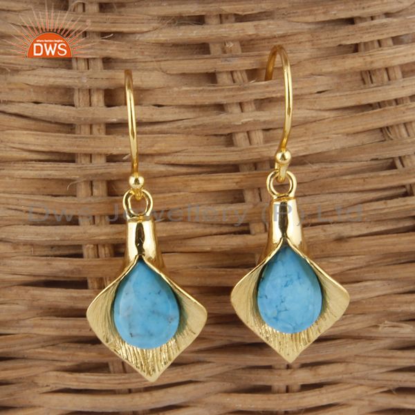 18K Yellow Gold Plated Sterling Silver Fashion Charming Gift Turquoise Earrings
