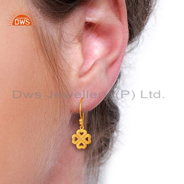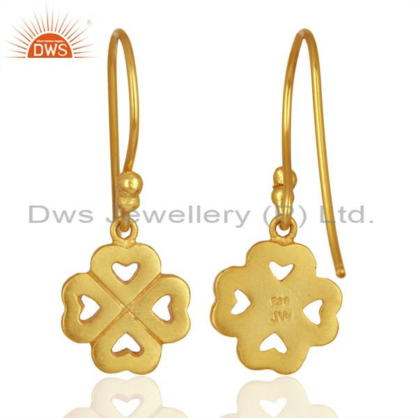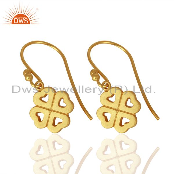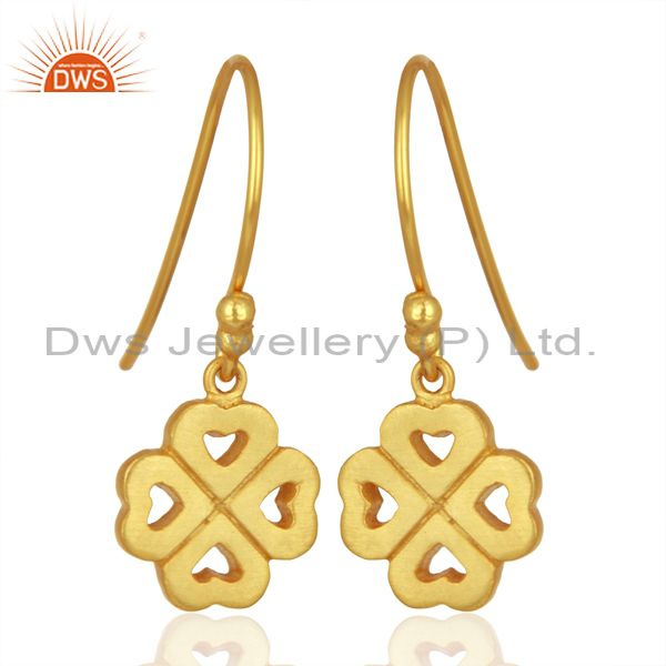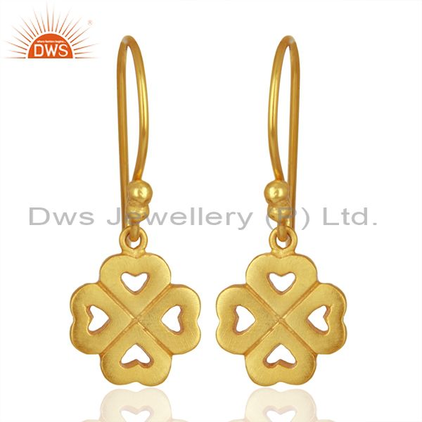 18K Yellow Gold Plated Sterling Silver Four Heart Design Dangle Earrings