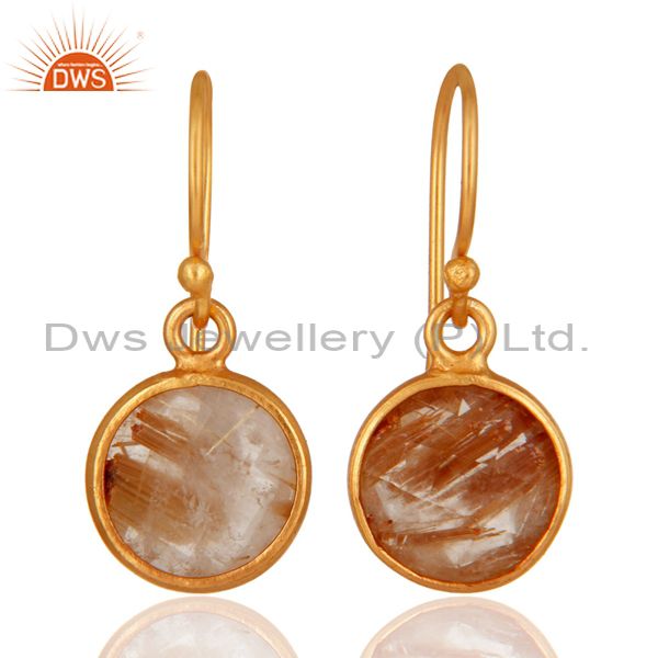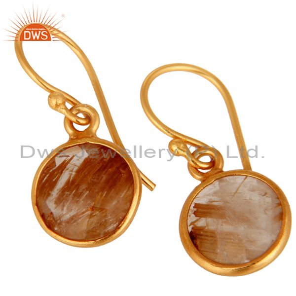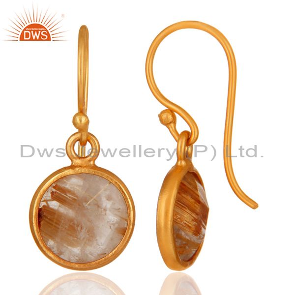 18K Yellow Gold Plated Sterling Silver Golden Rutilated Quartz Bezel Set Earring