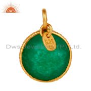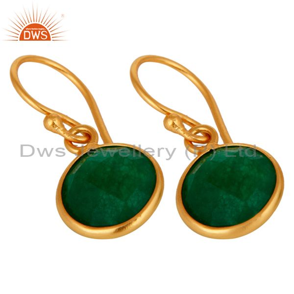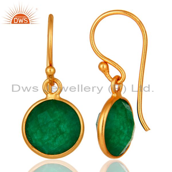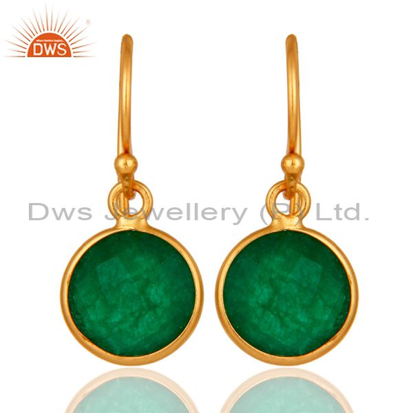 18K Yellow Gold Plated Sterling Silver Green Aventurine Bezel Set Drop Earrings