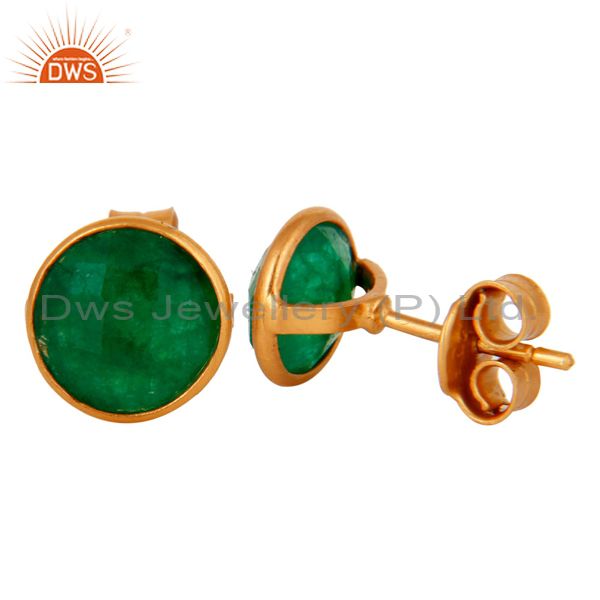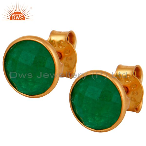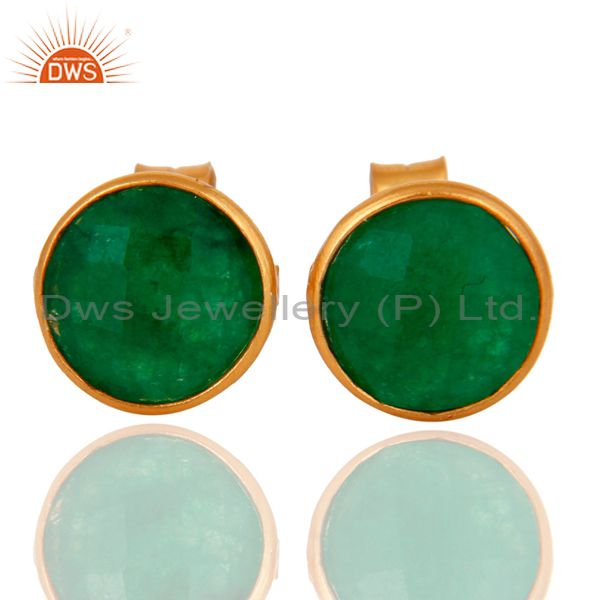 18K Yellow Gold Plated Sterling Silver Green Aventurine Bezel Set Stud Earrings