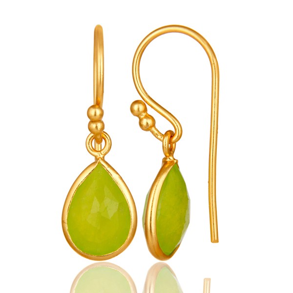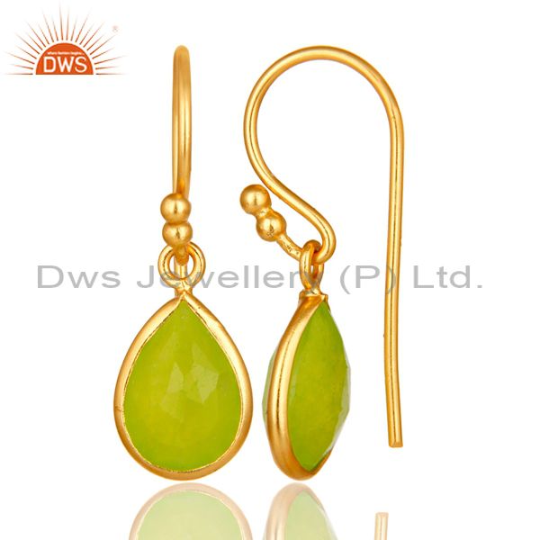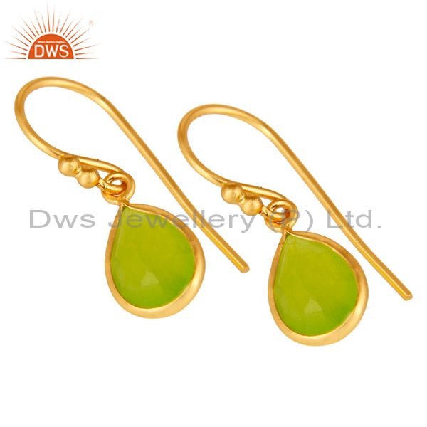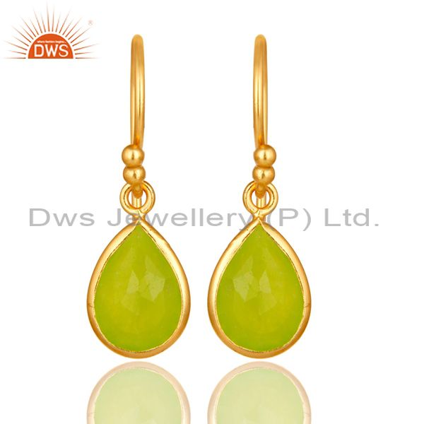 18K Yellow Gold Plated Sterling Silver Green Chalcedony Bezel Set Dangle Earring