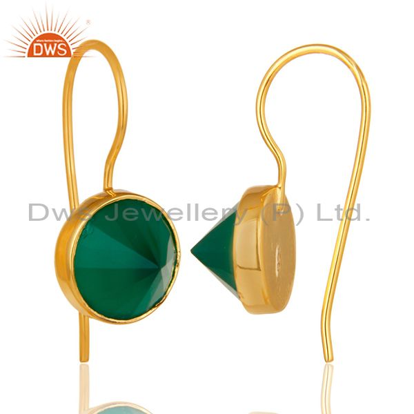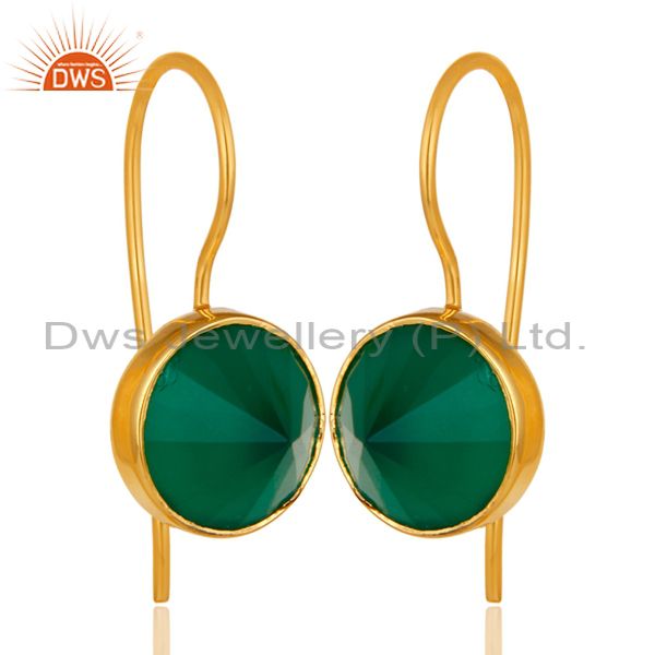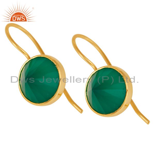 18K Yellow Gold Plated Sterling Silver Green Onyx Bezel Set Gemstone Earrings