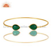 18K Yellow Gold Plated Sterling Silver Green Onyx Gemstone Dangle Earrings