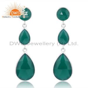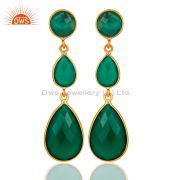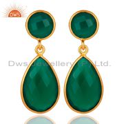 18K Yellow Gold Plated Sterling Silver Green Onyx Teardrop Chain Dangle Earrings