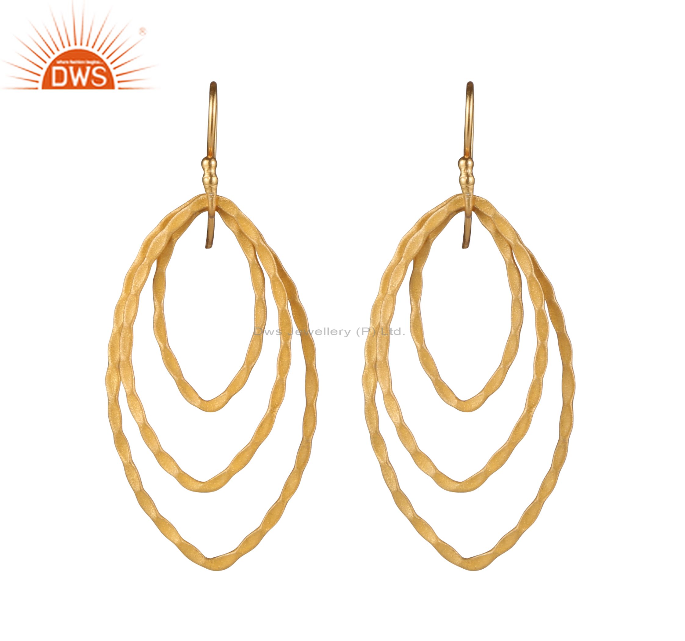 18K Yellow Gold Plated Sterling Silver Hammered Multi Link Circle Hook Earrings