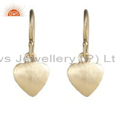 18K Yellow Gold Plated Sterling Silver Heart Design Dangle Earrings