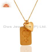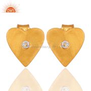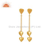 18K Yellow Gold Plated Sterling Silver Heart Link Chain Dangle Stud Earrings