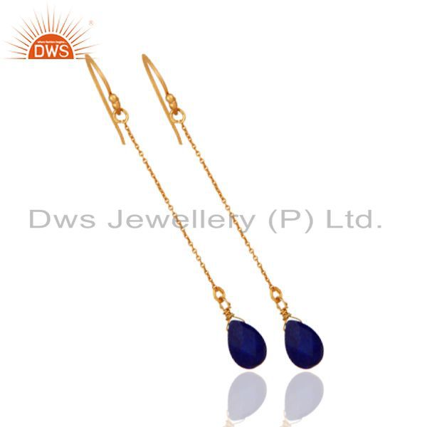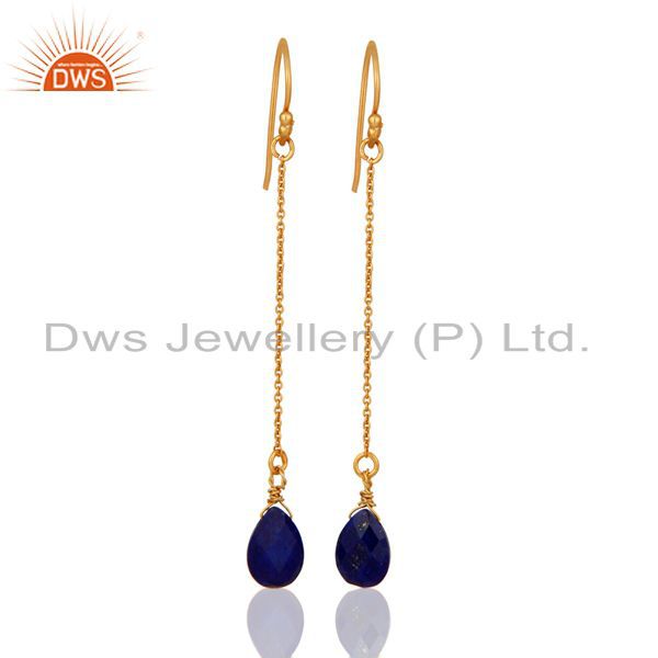 18K Yellow Gold Plated Sterling Silver Lapis Lazuli Briolette Chain Earrings