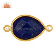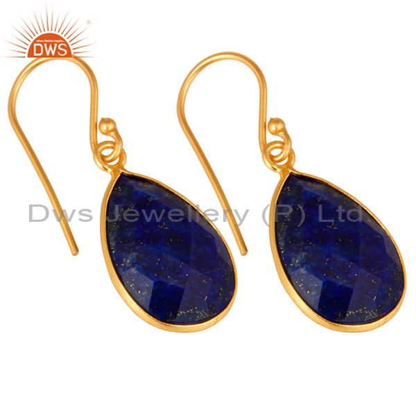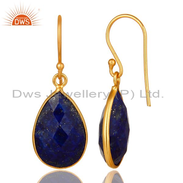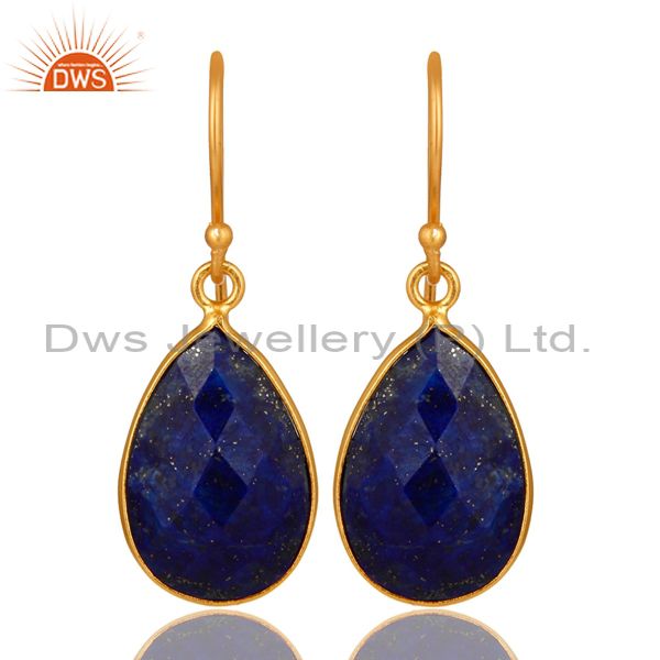 18K Yellow Gold Plated Sterling Silver Lapis Lazuli Faceted Bezel Drop Earrings