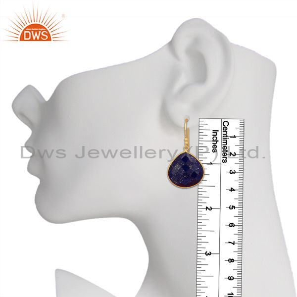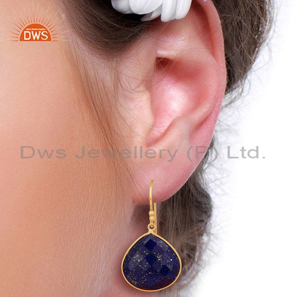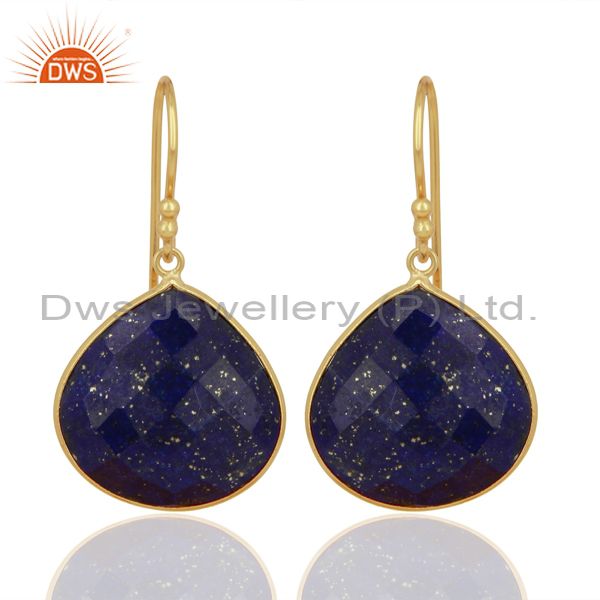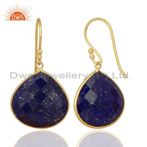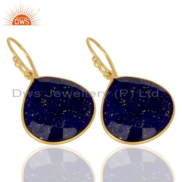 18K Yellow Gold Plated Sterling Silver Lapis Lazuli Gemstone Bezel Set Earrings