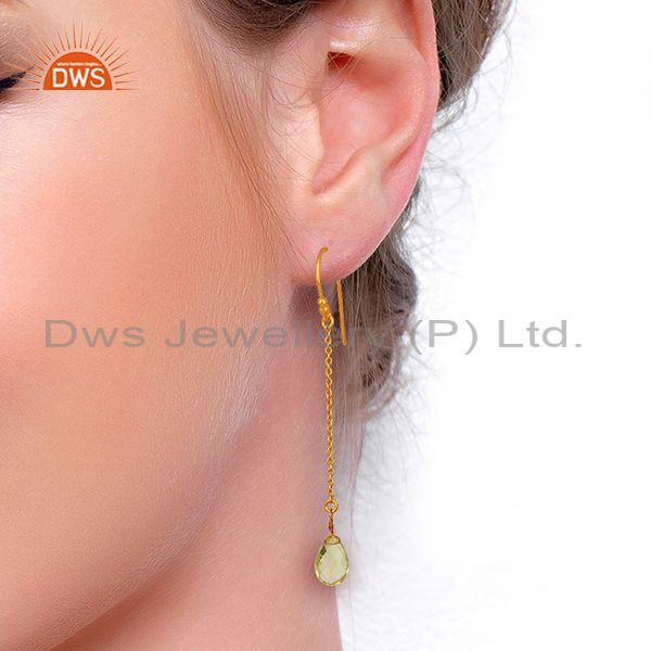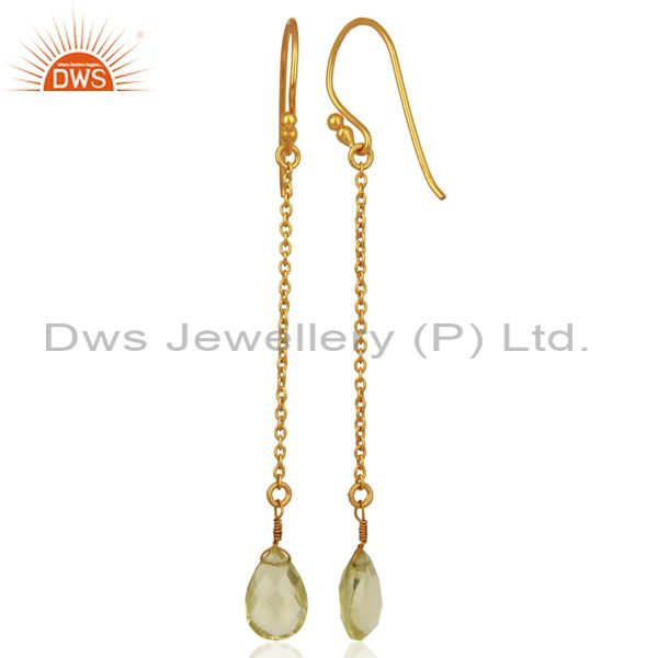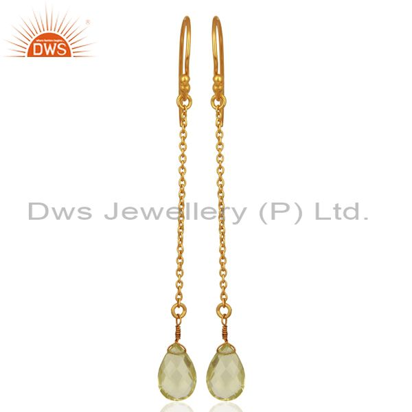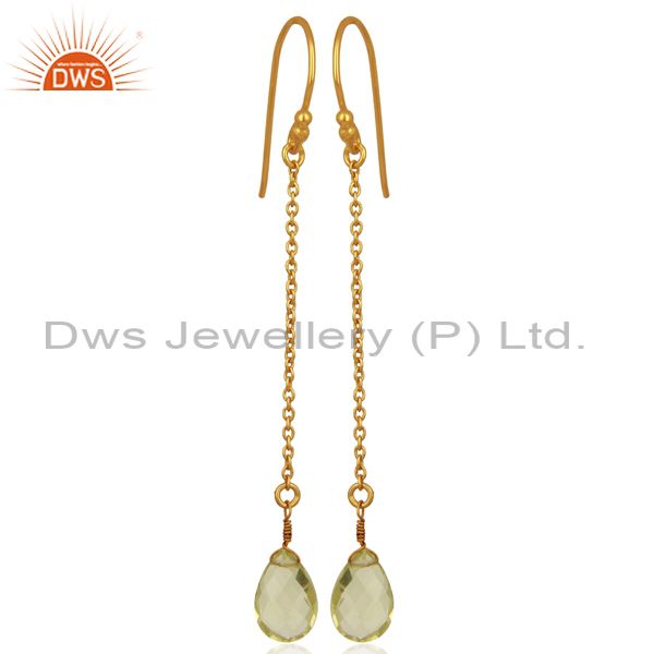 18K Yellow Gold Plated Sterling Silver Lemon Topaz Link Chain Drop Earrings
