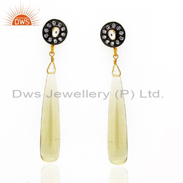 18K Yellow Gold Plated Sterling Silver Lemon Topaz Smooth Drop Earrings With Cz