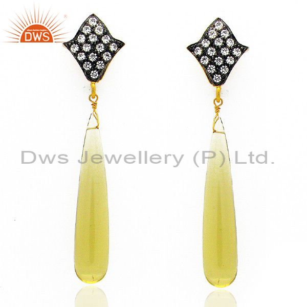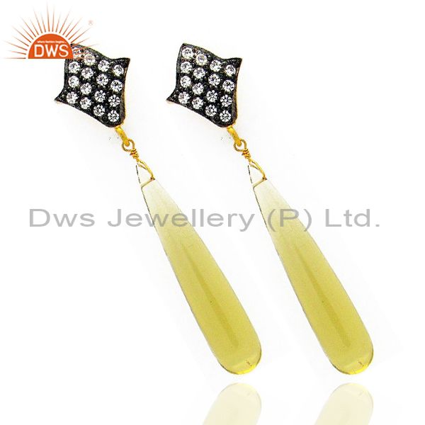 18K Yellow Gold Plated Sterling Silver Lemon Topaz Smooth Pencil Earring With Cz
