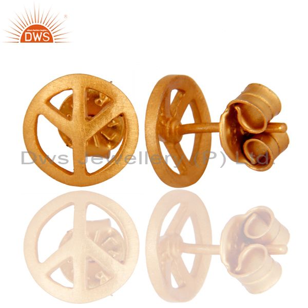 18K Yellow Gold Plated Sterling Silver Matte Finish Peace Sign Stud Earrings