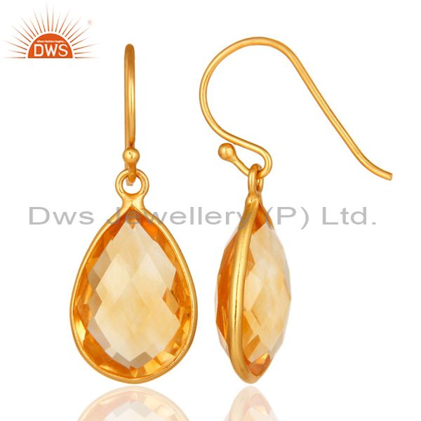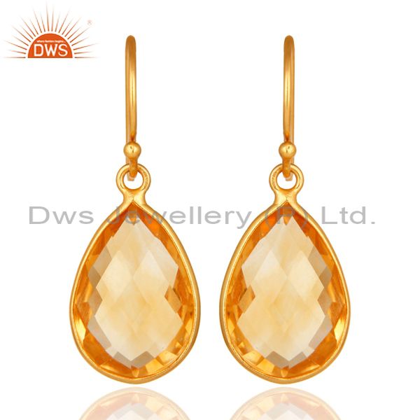 18K Yellow Gold Plated Sterling Silver Natural Citrine Gemstone Teardrop Earring