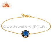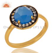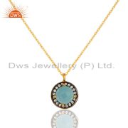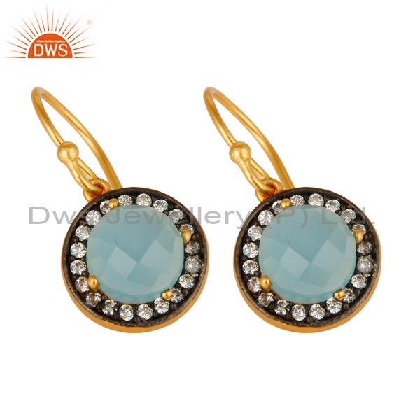 18K Yellow Gold Plated Sterling Silver Pave CZ And Aqua Blue Chalcedony Earrings