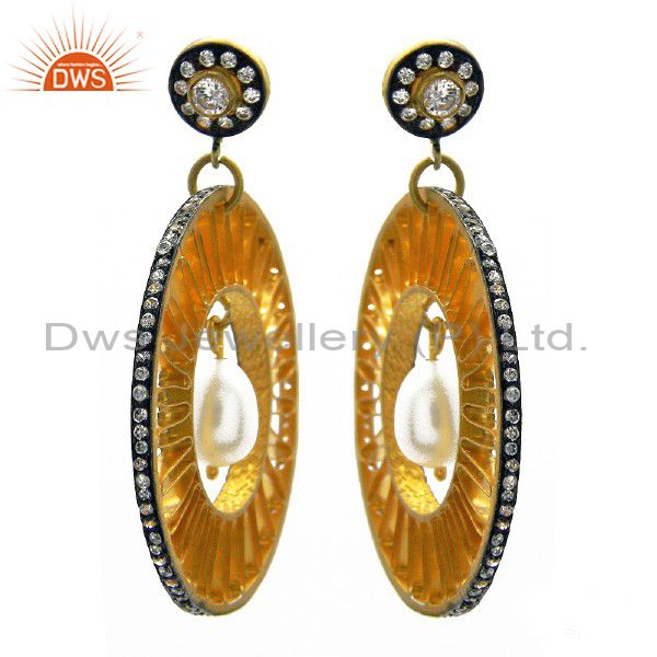18K Yellow Gold Plated Sterling Silver Pearl And Cubic Zirconia Circle Earrings