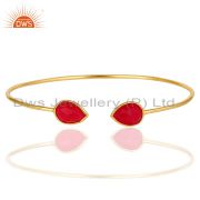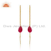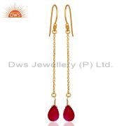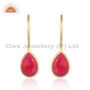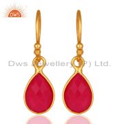 18K Yellow Gold Plated Sterling Silver Pink Chalcedony Bezel Set Dangle Earrings