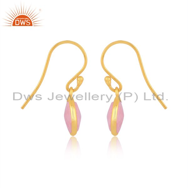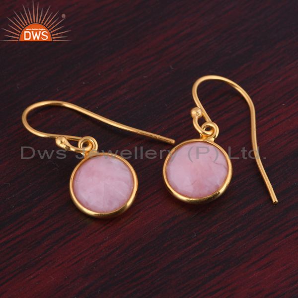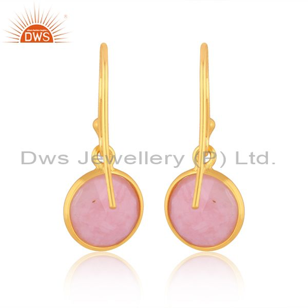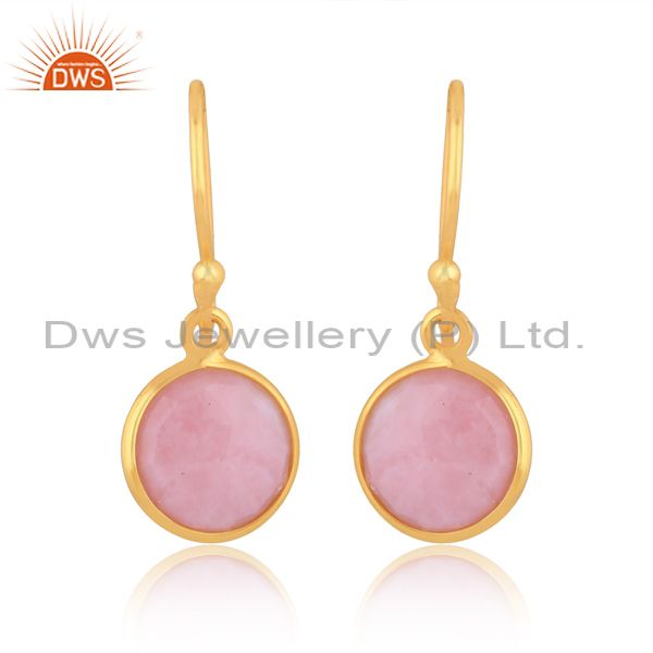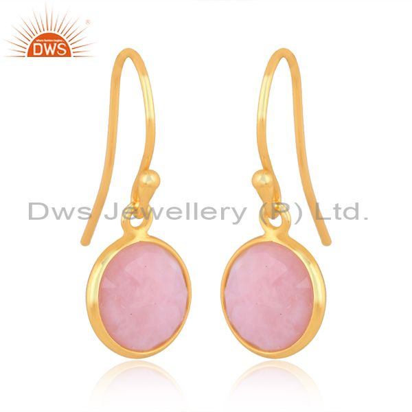 18K Yellow Gold Plated Sterling Silver Pink Opal Bezel Set Dangle Hook Earrings