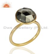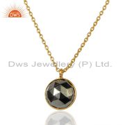 18K Yellow Gold Plated Sterling Silver Pyrite Gemstone Bezel Set Drop Earrings
