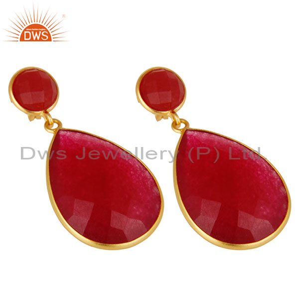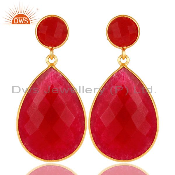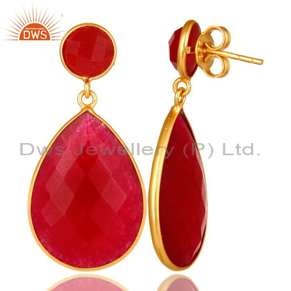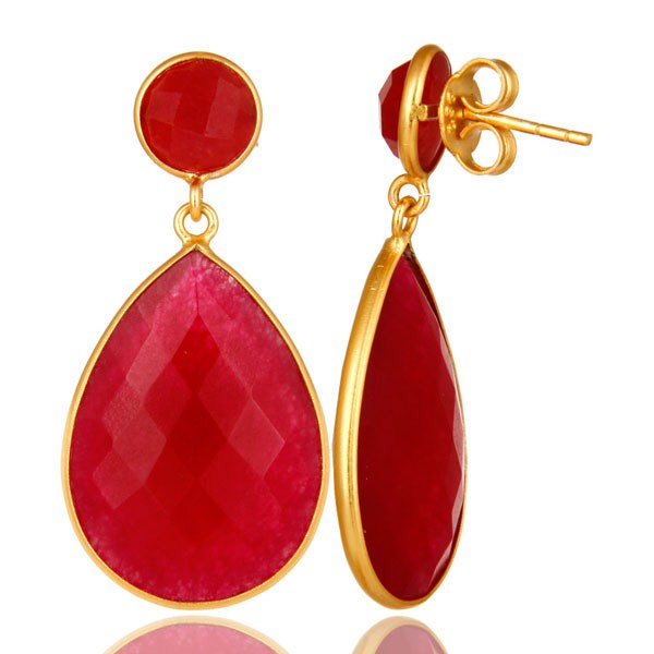 18K Yellow Gold Plated Sterling Silver Red Aventurine Bezel Set Teardrop Earring