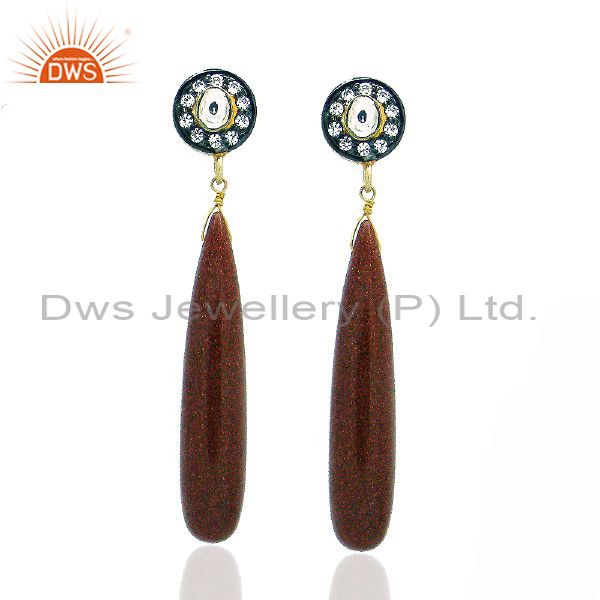 18K Yellow Gold Plated Sterling Silver Red Sun Sitara Smooth Drop Earrings