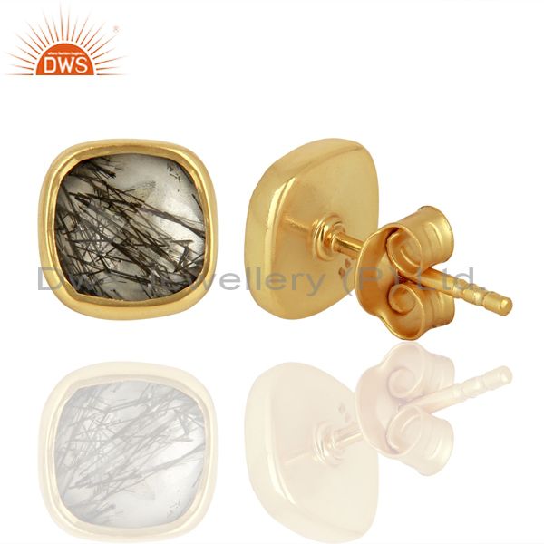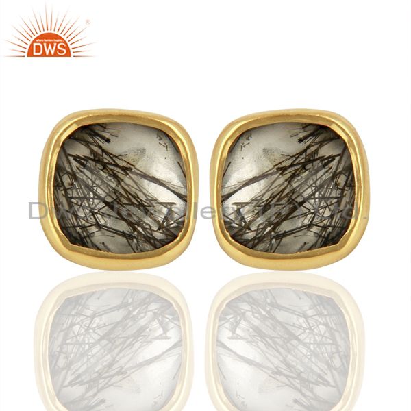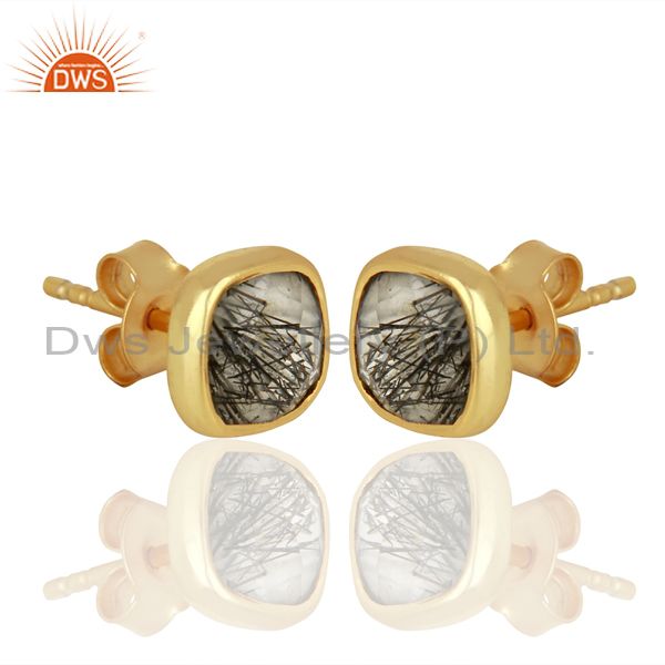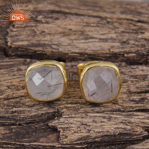18K Yellow Gold Plated Sterling Silver Rutilated Quartz Stud Earrings Rutile