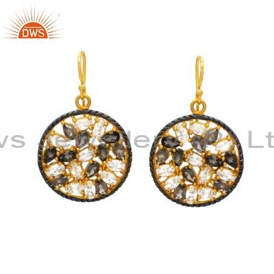 18K Yellow Gold Plated Sterling Silver Smoky Quartz And Cubic Zirconia Earrings