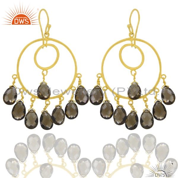 18K Yellow Gold Plated Sterling Silver Smoky Quartz Chandelier Earrings
