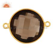 18K Yellow Gold Plated Sterling Silver Smoky Quartz Gemstone Bezel Set Earrings