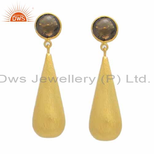 18K Yellow Gold Plated Sterling Silver Smoky Quartz Gemstone Teardrop Earrings