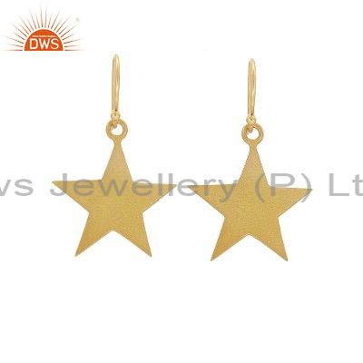 18K Yellow Gold Plated Sterling Silver Star Design Dangle Earrings
