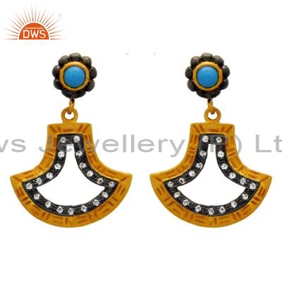 18K Yellow Gold Plated Sterling Silver Turquoise And Cz Dangle Earrings