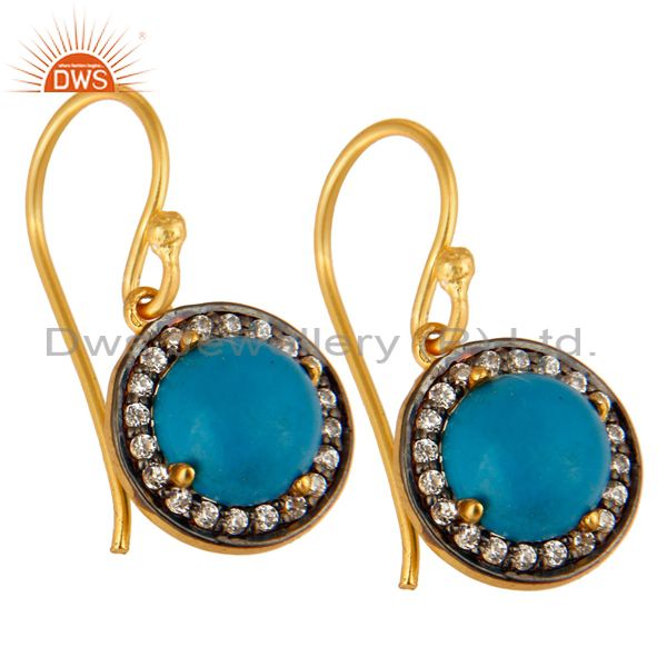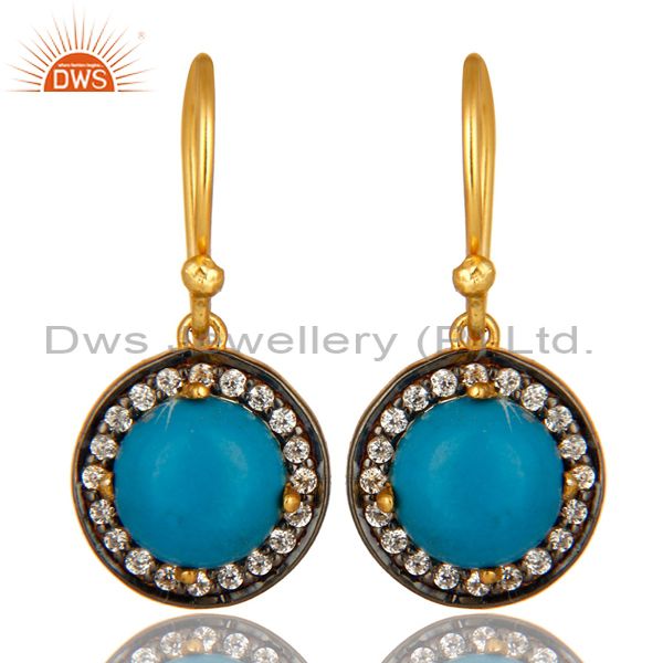18K Yellow Gold Plated Sterling Silver Turquoise And CZ Surrounded Drop Earrings