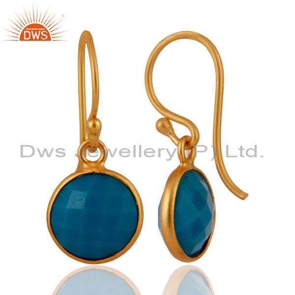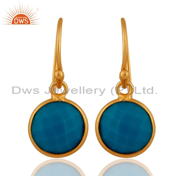 18K Yellow Gold Plated Sterling Silver Turquoise Bezel Set Dangle Hook Earrings