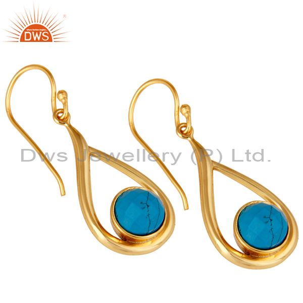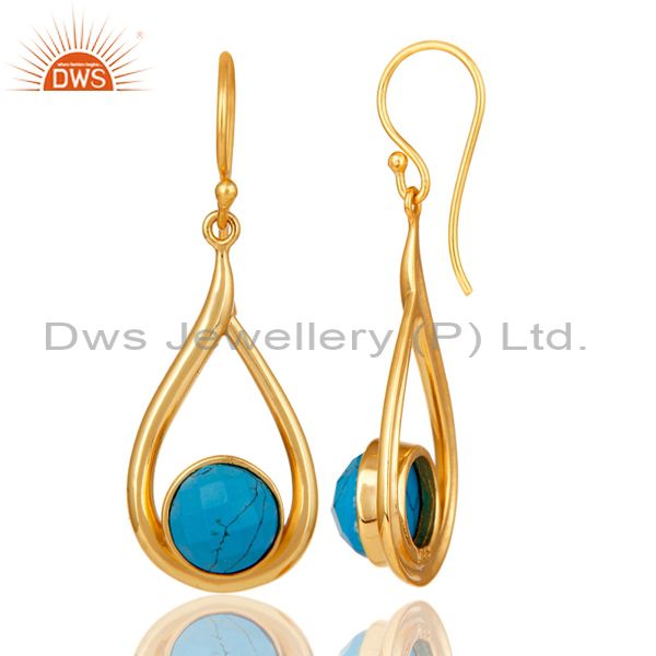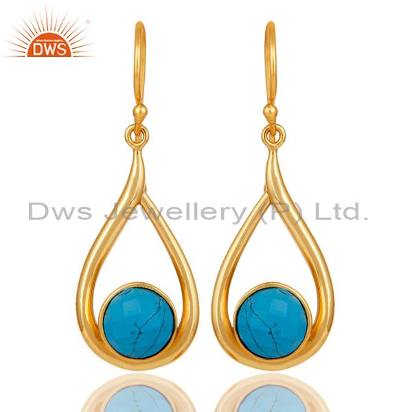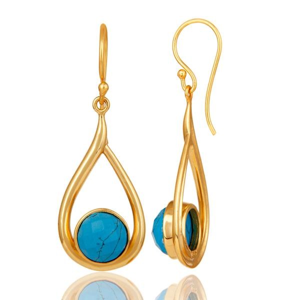 18k Yellow Gold Plated Sterling Silver Turquoise Drop Dangle Earring