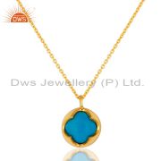 18K Yellow Gold Plated Sterling Silver Turquoise Gemstone Dangle Earrings