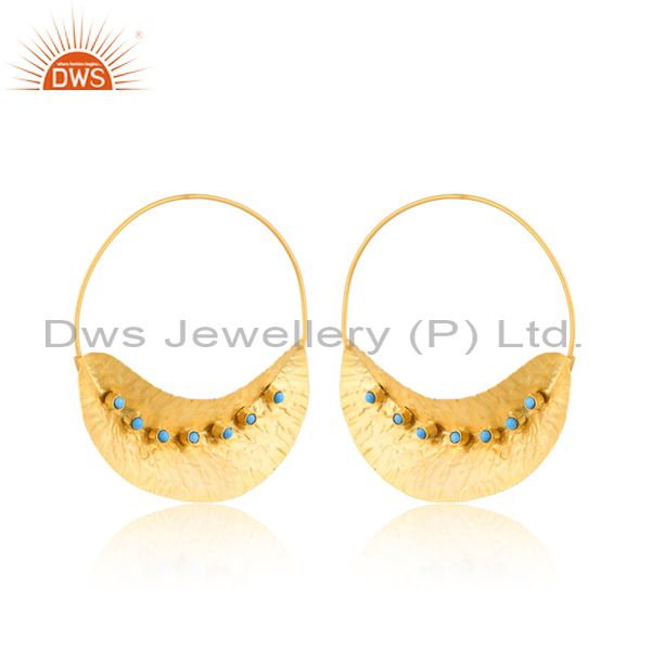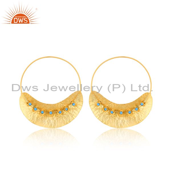18K Yellow Gold Plated Sterling Silver Turquoise Handmade Fulani Dangle Earrings