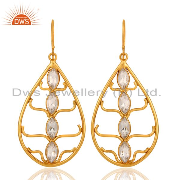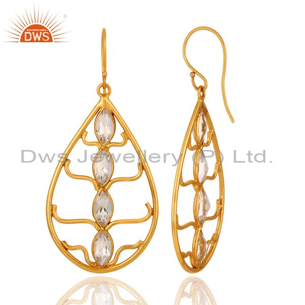 18K Yellow Gold Plated Sterling Silver White Topaz Designer Drop Dangle Earrings