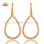 18K Yellow Gold Plated Sterling Silver White Topaz Gemstone Dangle Earrings