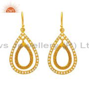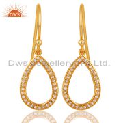 18K Yellow Gold Plated Sterling Silver White Topaz Handmade Fashion Earrings