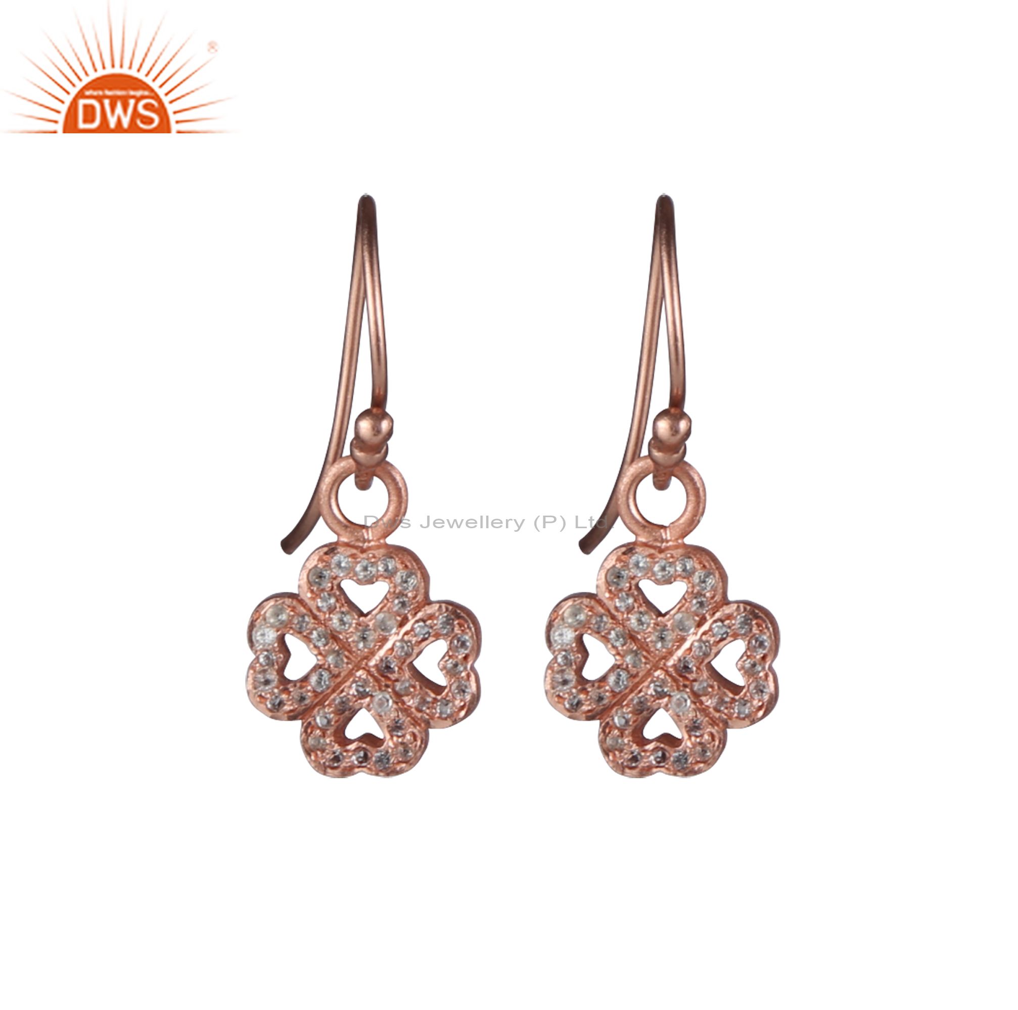 18K Yellow Gold Plated Sterling Silver White Topaz Heart Design Dangle Earrings