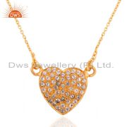18K Yellow Gold Plated Sterling Silver White Topaz Heart Design Stud Earrings
