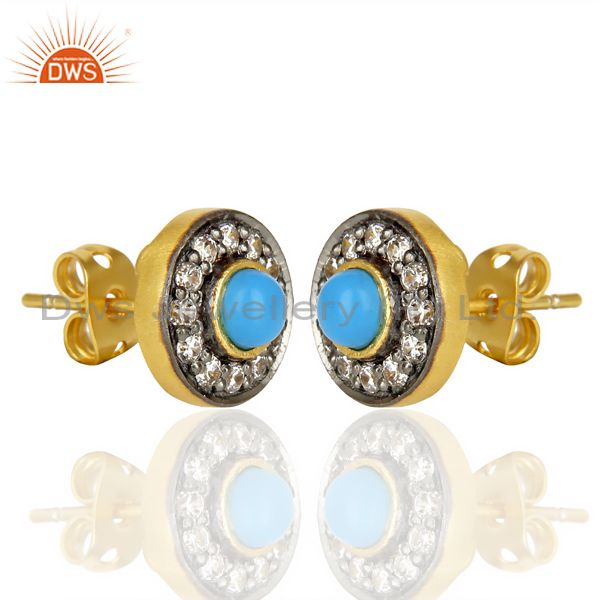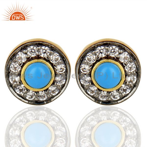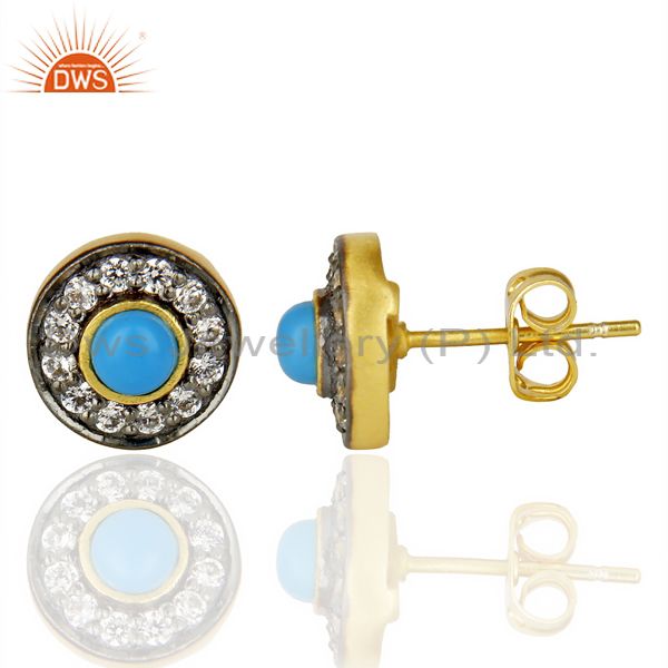 18K Yellow Gold Plated Turquoise And Zircon Halo Stud Brass Earrings