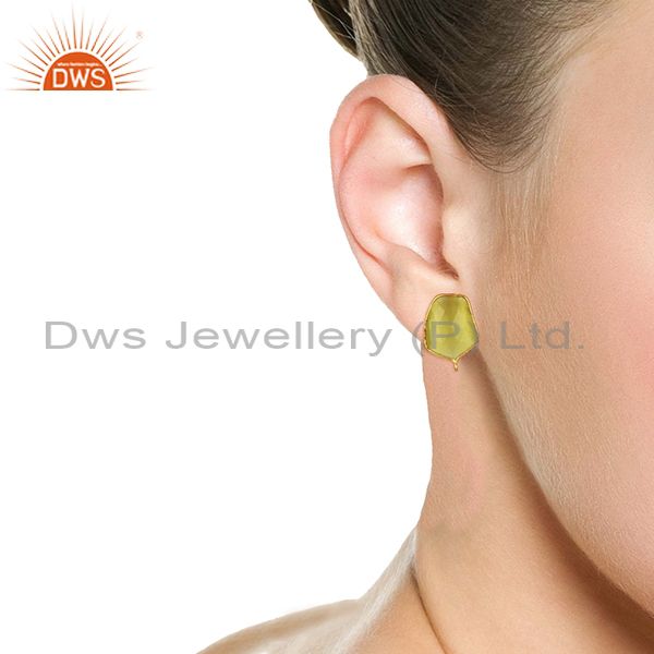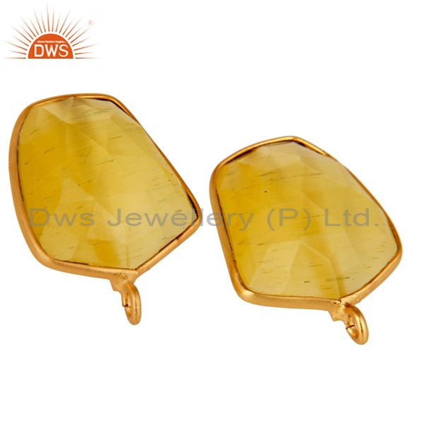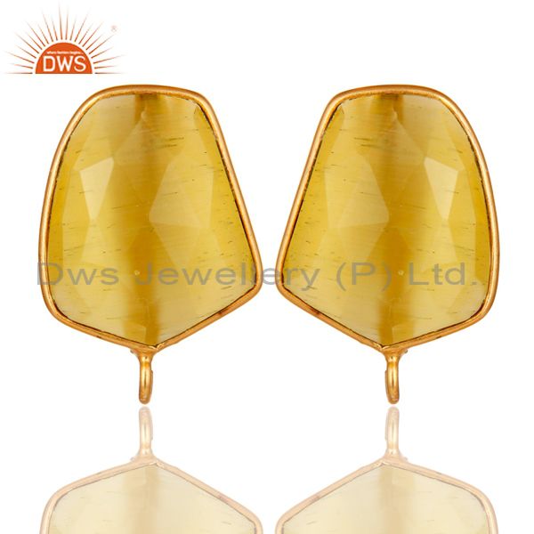 18K Yellow Gold Platedl Yellow Moonstone Stud Earring Jewelry Assesories